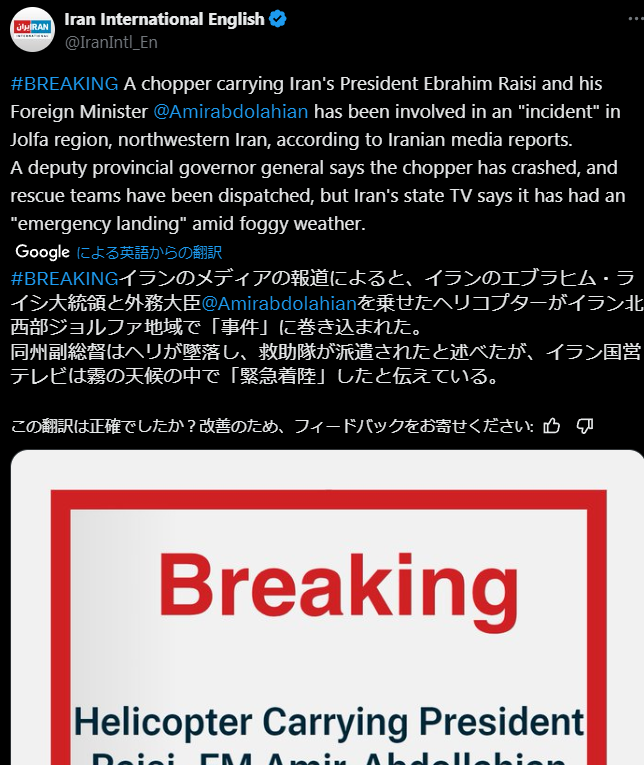 そもそもイランの大統領なんてお飾りだし本当に墜落しててもなんの影響もない