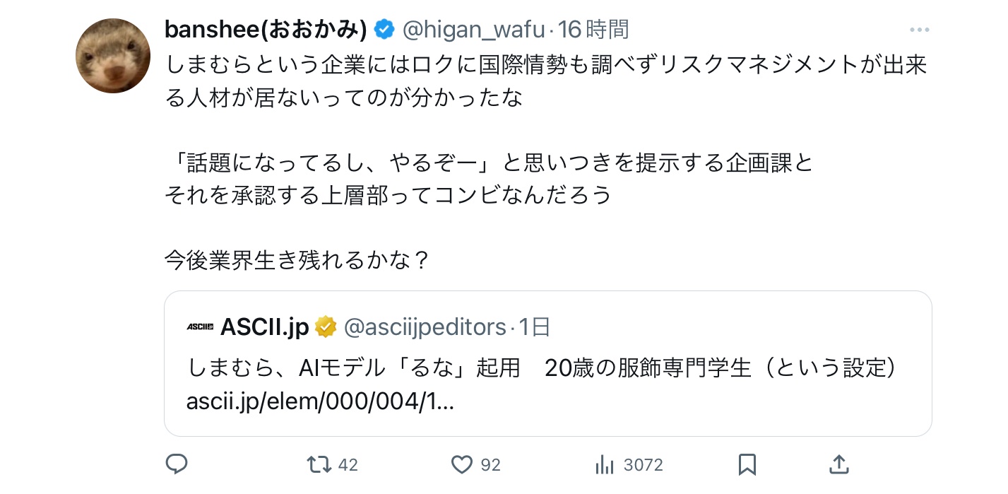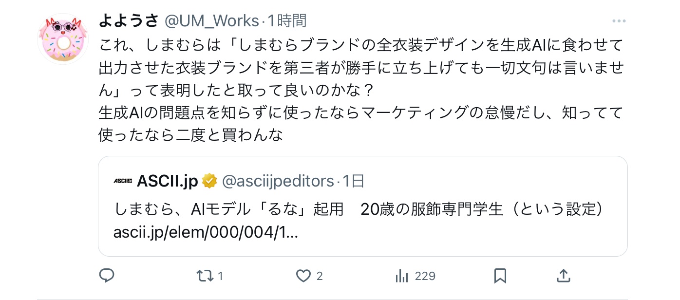 企業からしたら広告としてキズが付く心配のないAIの方が良いに決まってるよね