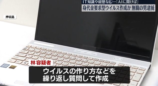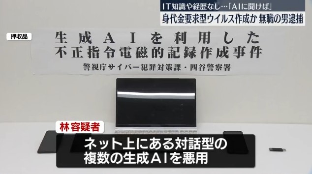 生成AI悪用しウイルス作成か、無職の男逮捕 IT知識なし
