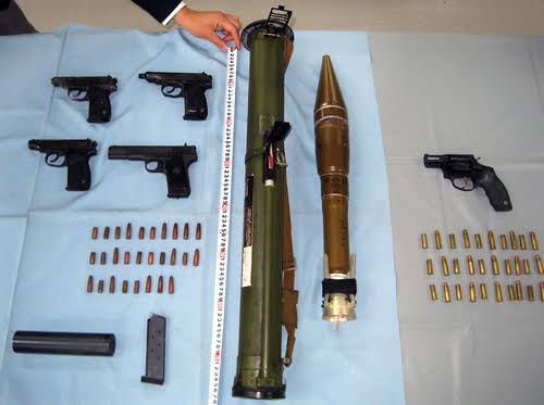 福岡県警は31日、北九州市小倉南区長行東1丁目の河川敷の草むらで、複数のロケットランチャーのようなものや、拳銃、手投げ弾のようなものが見つかったと発表した。