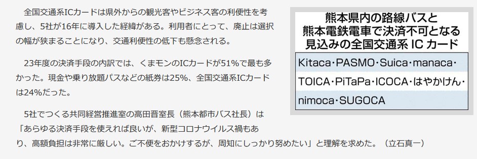全国交通系ICカード廃止、クレジットカードなどタッチ決済導入へ 熊本県内5社の路線バスと電鉄電車|熊本日日新聞