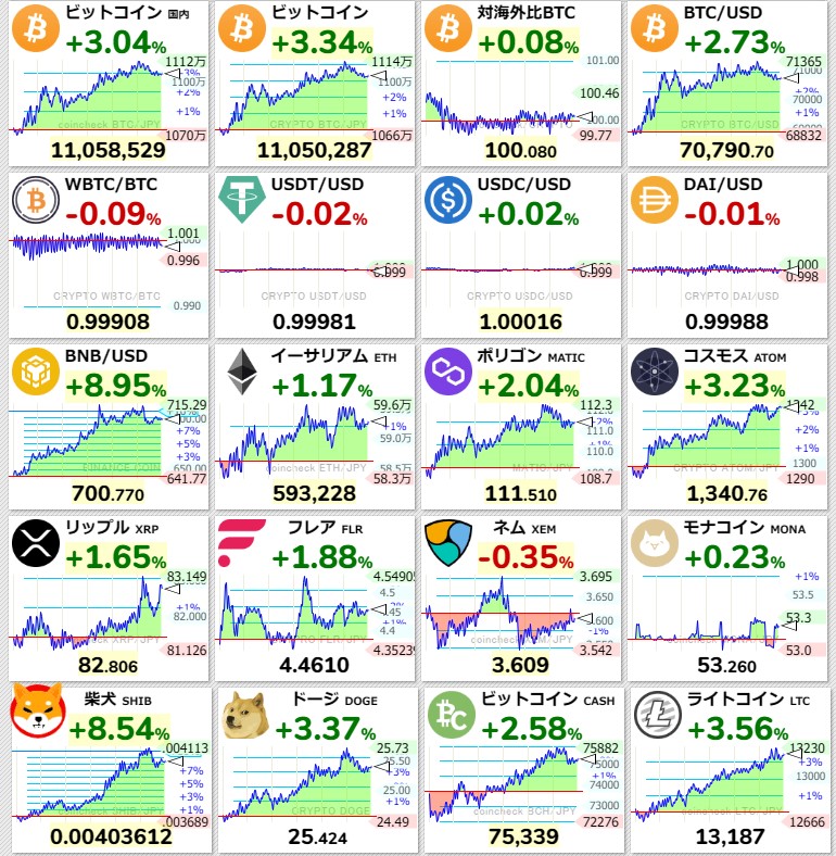 ビットコなんかずるずる上がってく(´・ω・`)
