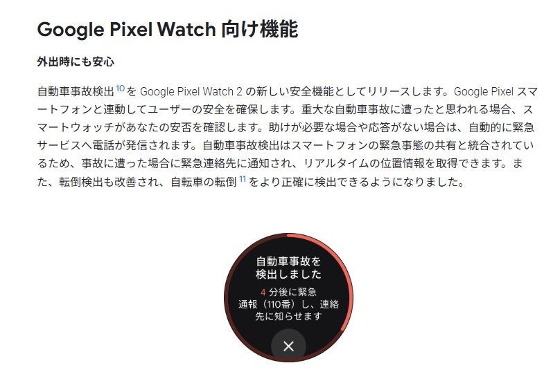 Google Pixel Watch 2に自動車事故検出を追加
