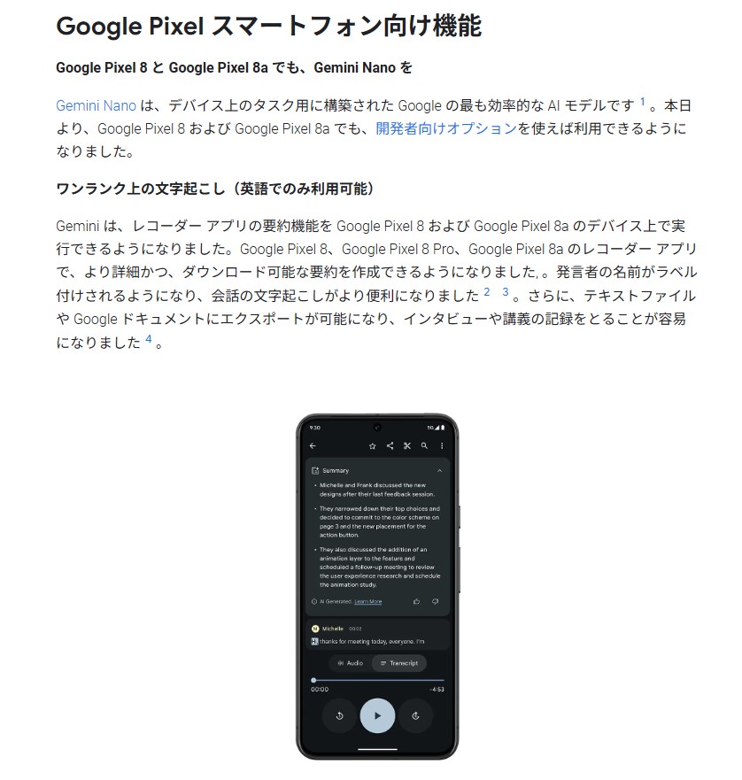 Google Pixel 8 と Google Pixel 8a でも、Gemini Nano を