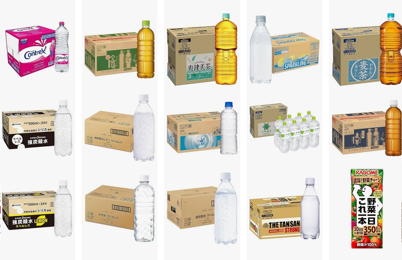 水・炭酸水・お茶・野菜ジュース・コーヒー・スポーツドリンクなど
