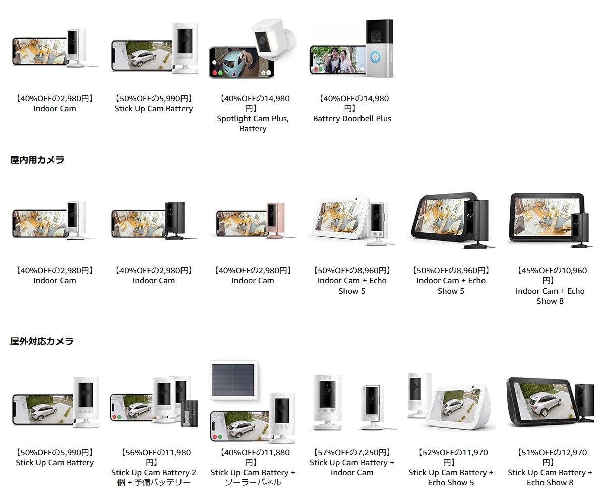 Ringのセキュリティカメラ・ドアベル プライムデーセール最大57%OFF