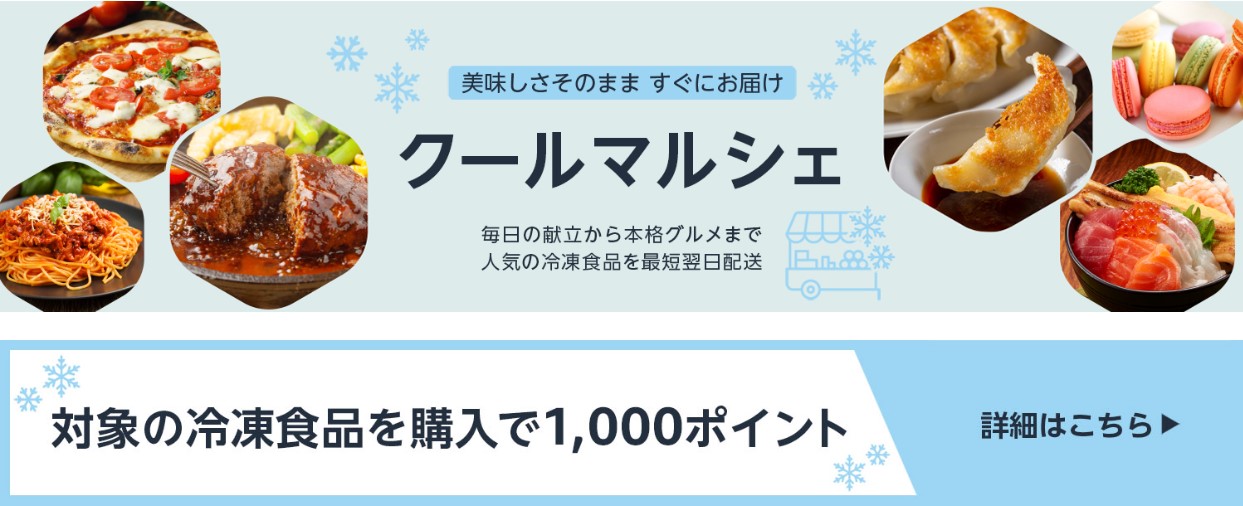 対象の冷凍食品を4,000円以上(税込・配送手数料を除く) 購入で1,000ポイント還元