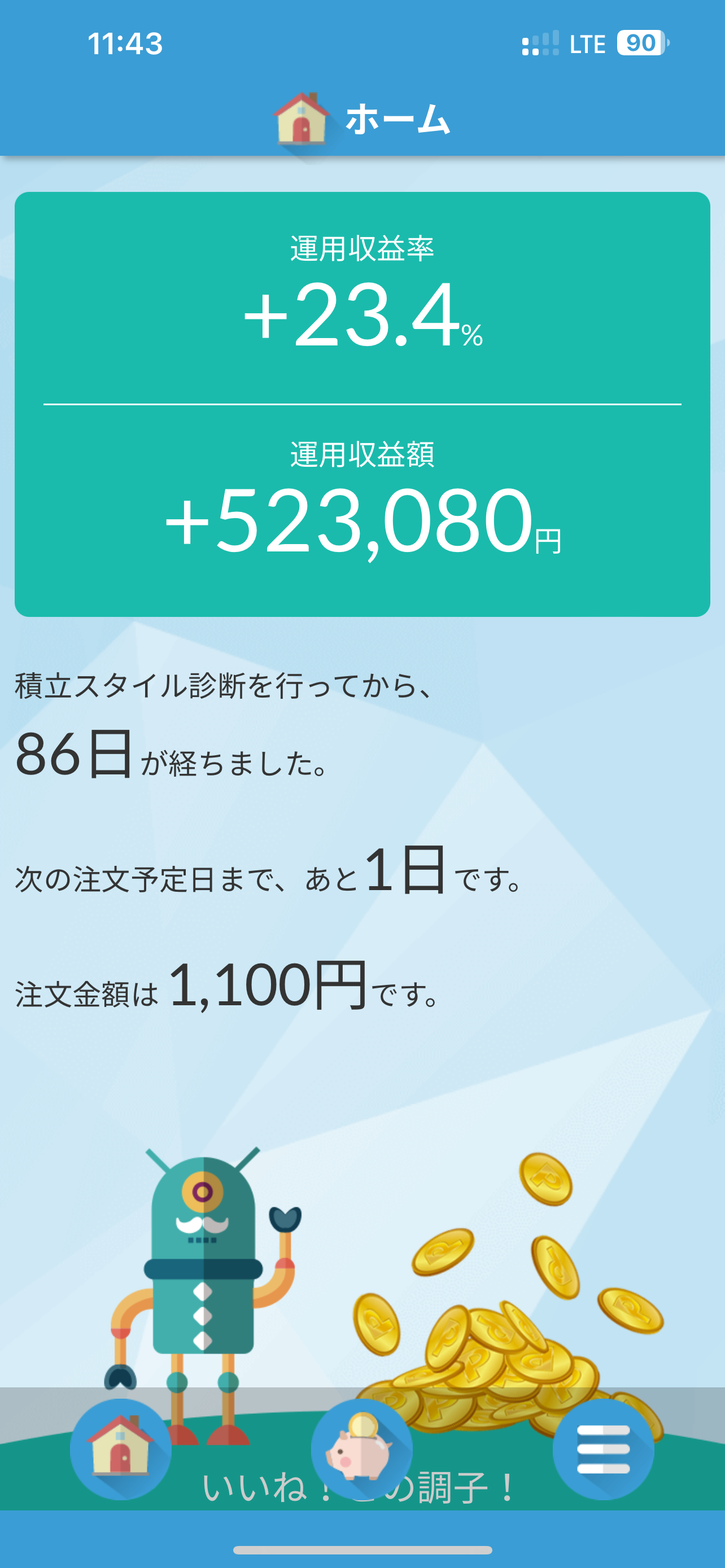 ワイ積立金額はほぼ同じやけど、始めたのが4年前くらいだから利益は90万