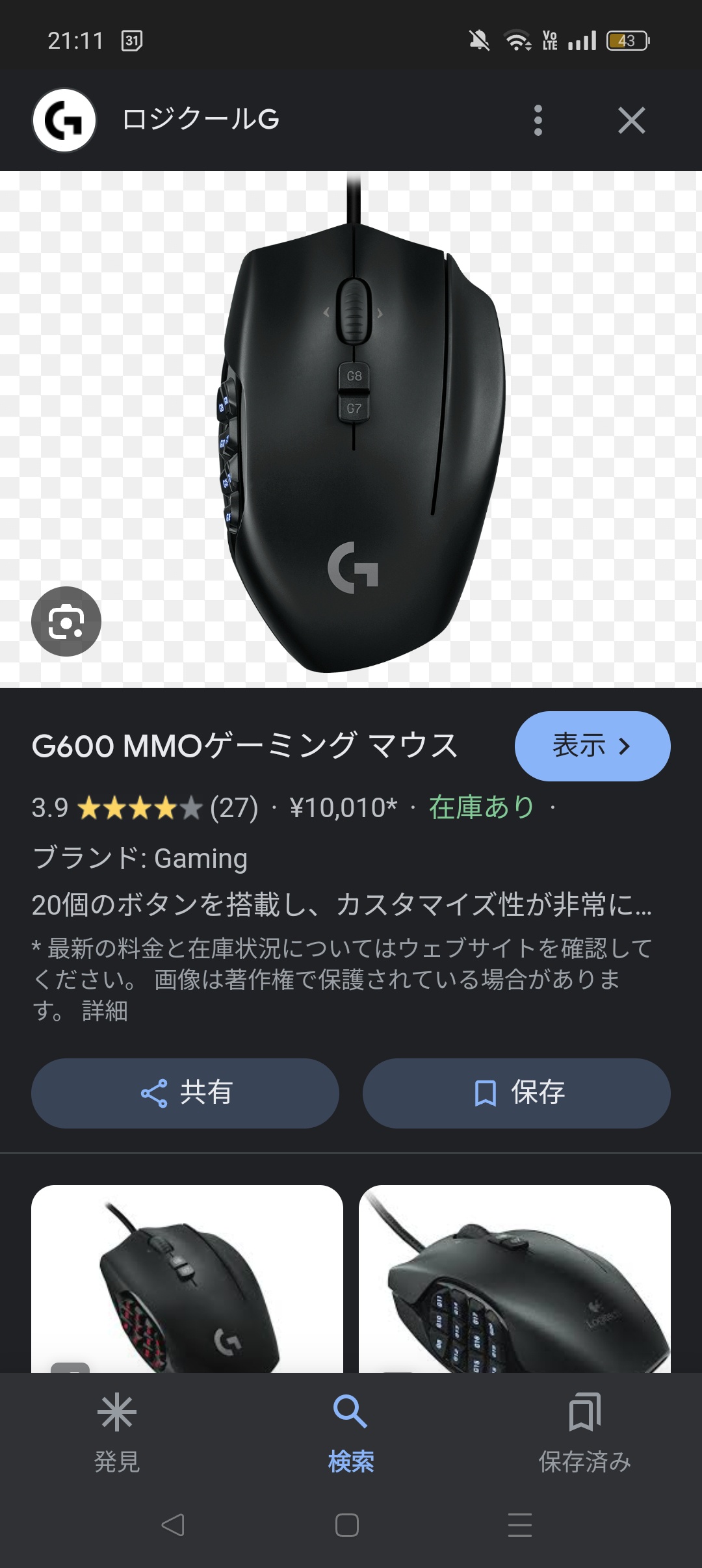ボタンのクリックが硬くて駄目だった。G502 は少し良かったけど、