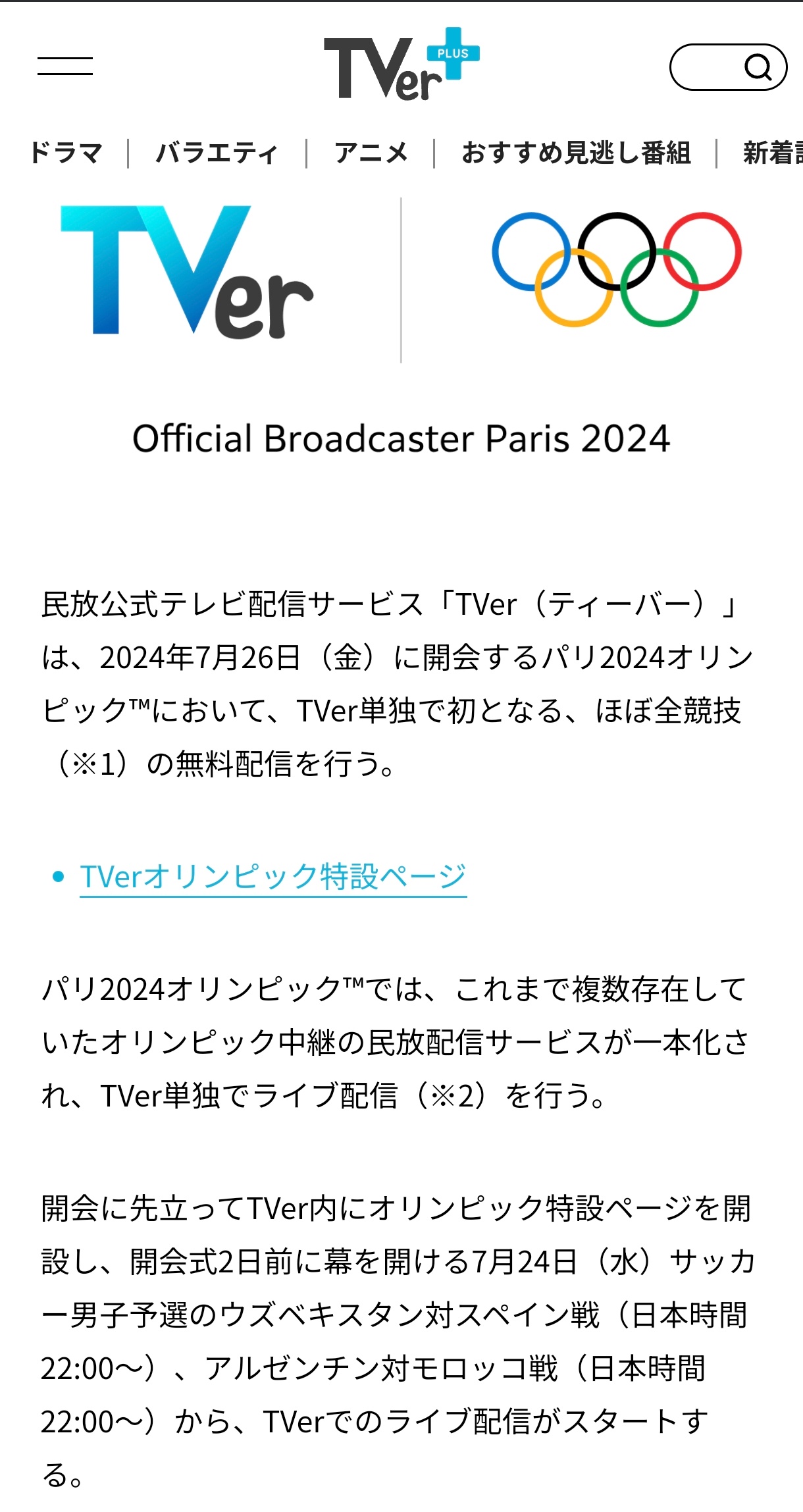 TVerで明日のサッカーからほぼ全競技生配信ってあるけどどうなんやろな