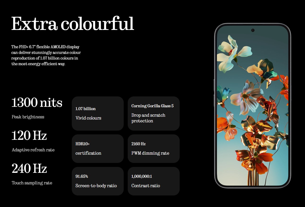 - ディスプレイ:6.7インチ(2412×1084・AMOLED・ピーク輝度1300nits・120Hz・ゴリラガラス5)