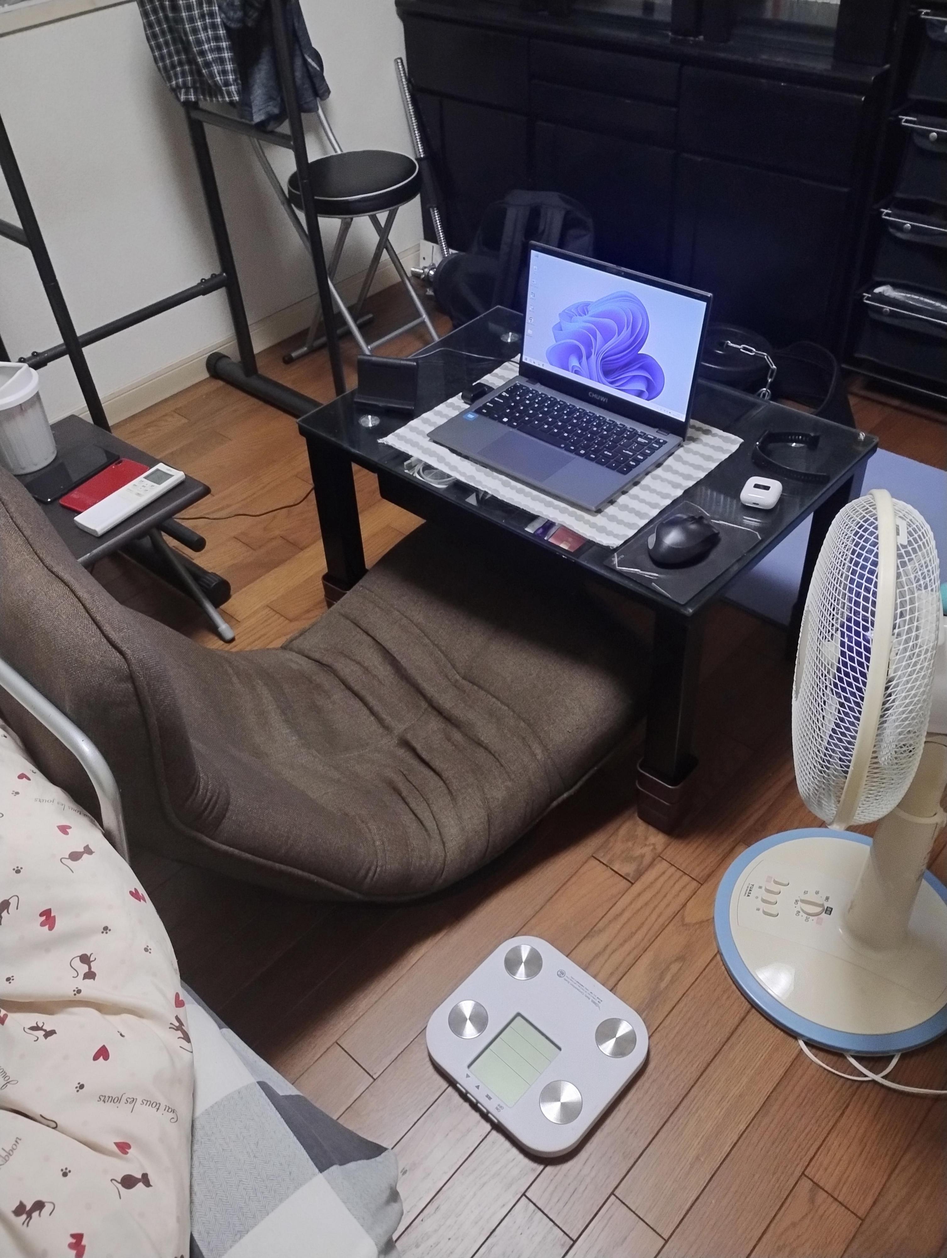 部屋狭すぎるのに机と椅子を真ん中に置いてるのがキモイってこの前言わなかったっけ