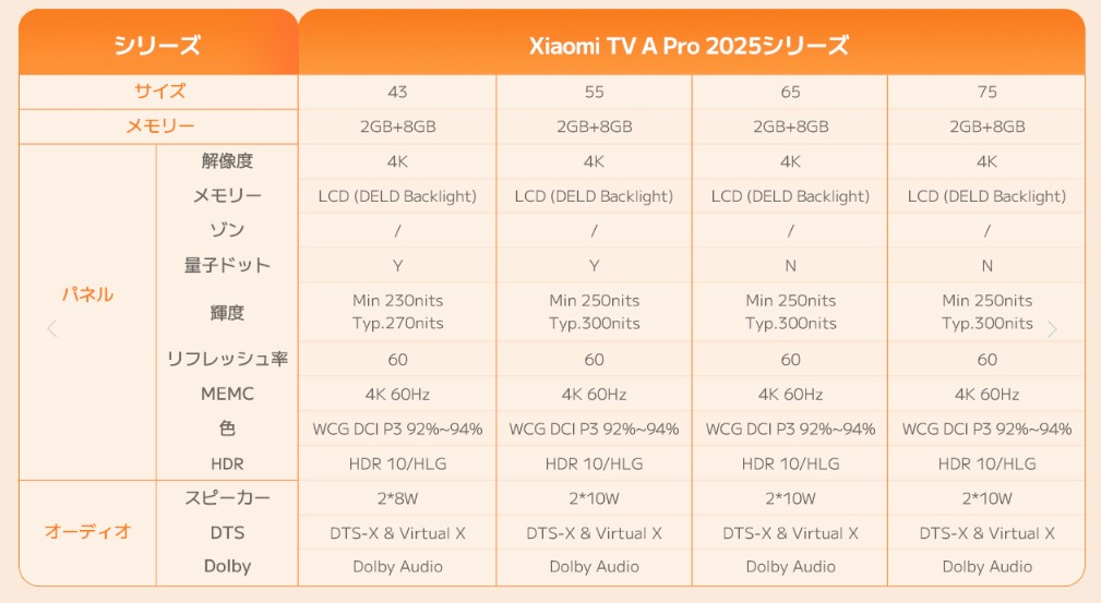 Xiaomi 4K QLED 量子ドット テレビ 43V型 Google TV 液晶テレビ A Pro 43 チューナーレス スマートテレビ ネット動画対応 Dolby Audio DTS-X MEMC対応 音声検索対応 Xiaomi TV A Pro 2025シリーズ