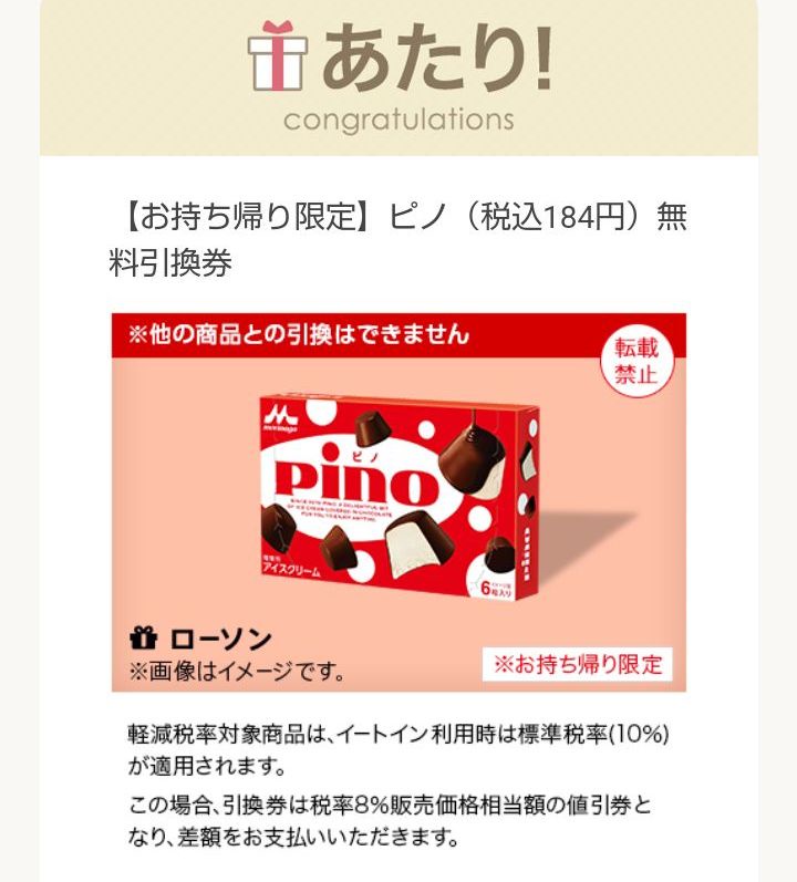 当たったけどピノ180円もすんのかよ…