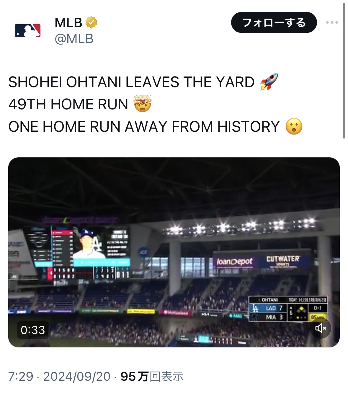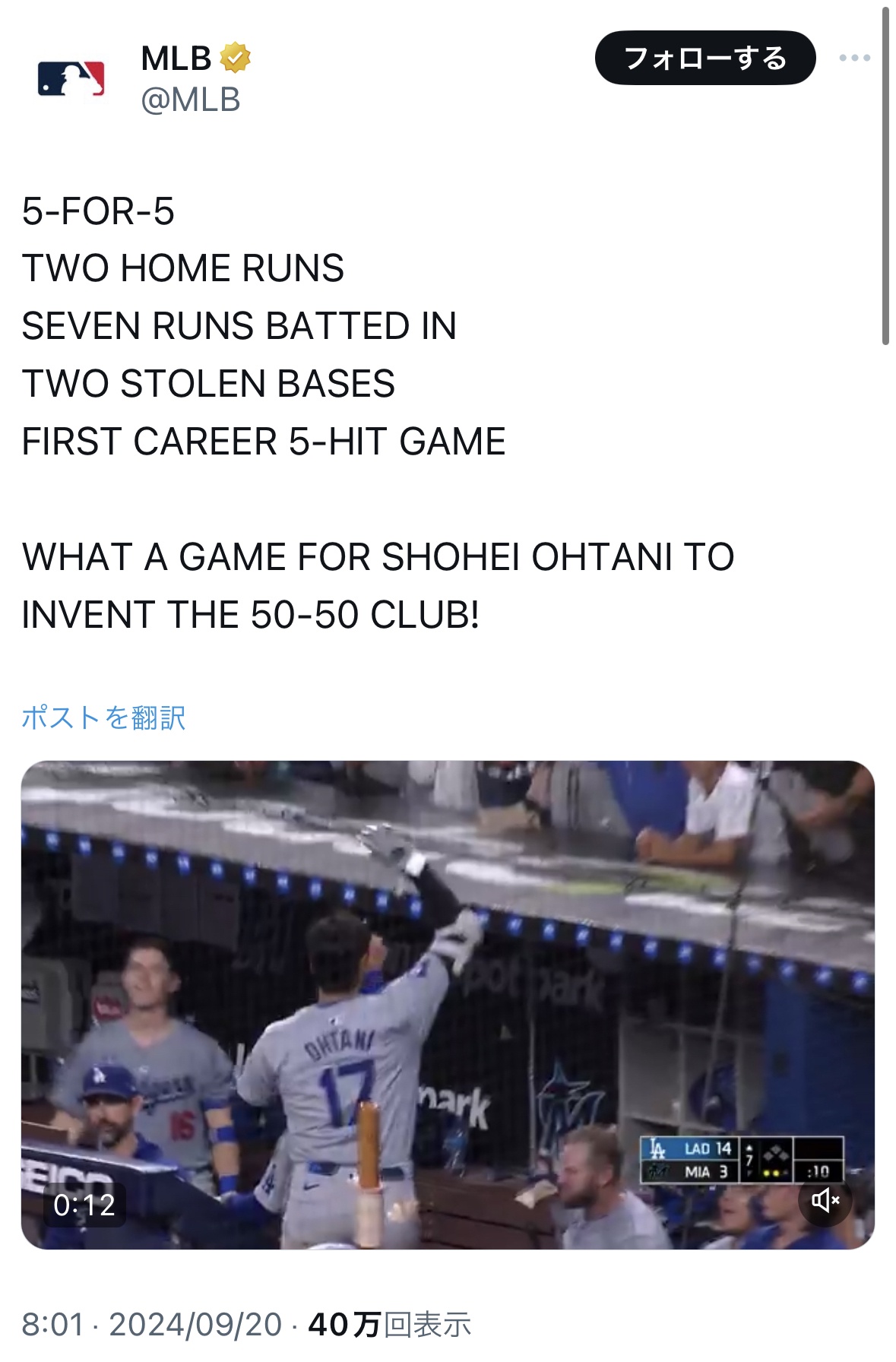 大谷 51本塁打 51盗塁