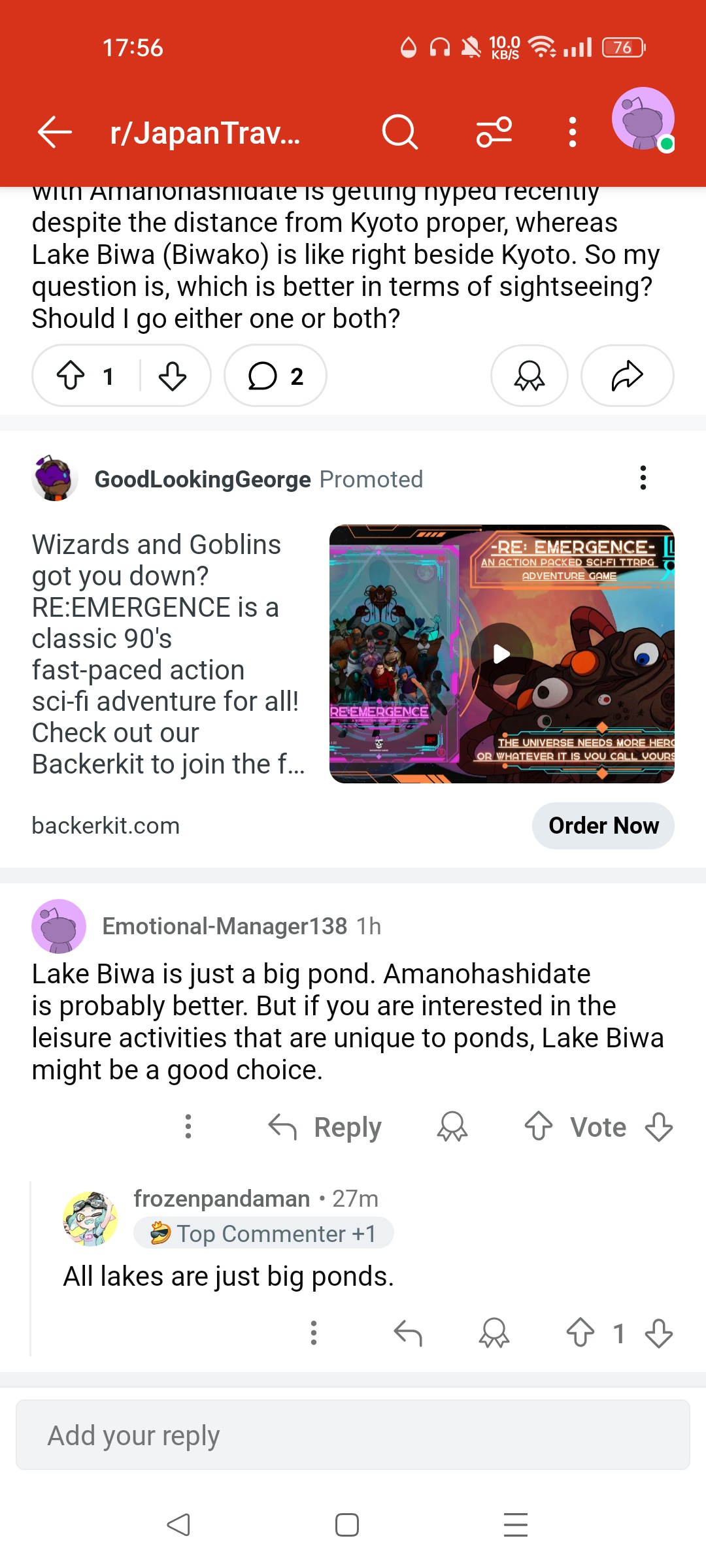 ただのデカい池であるのを理解した上で行く価値があるかどうか聞かれてることくらいわかるよね?