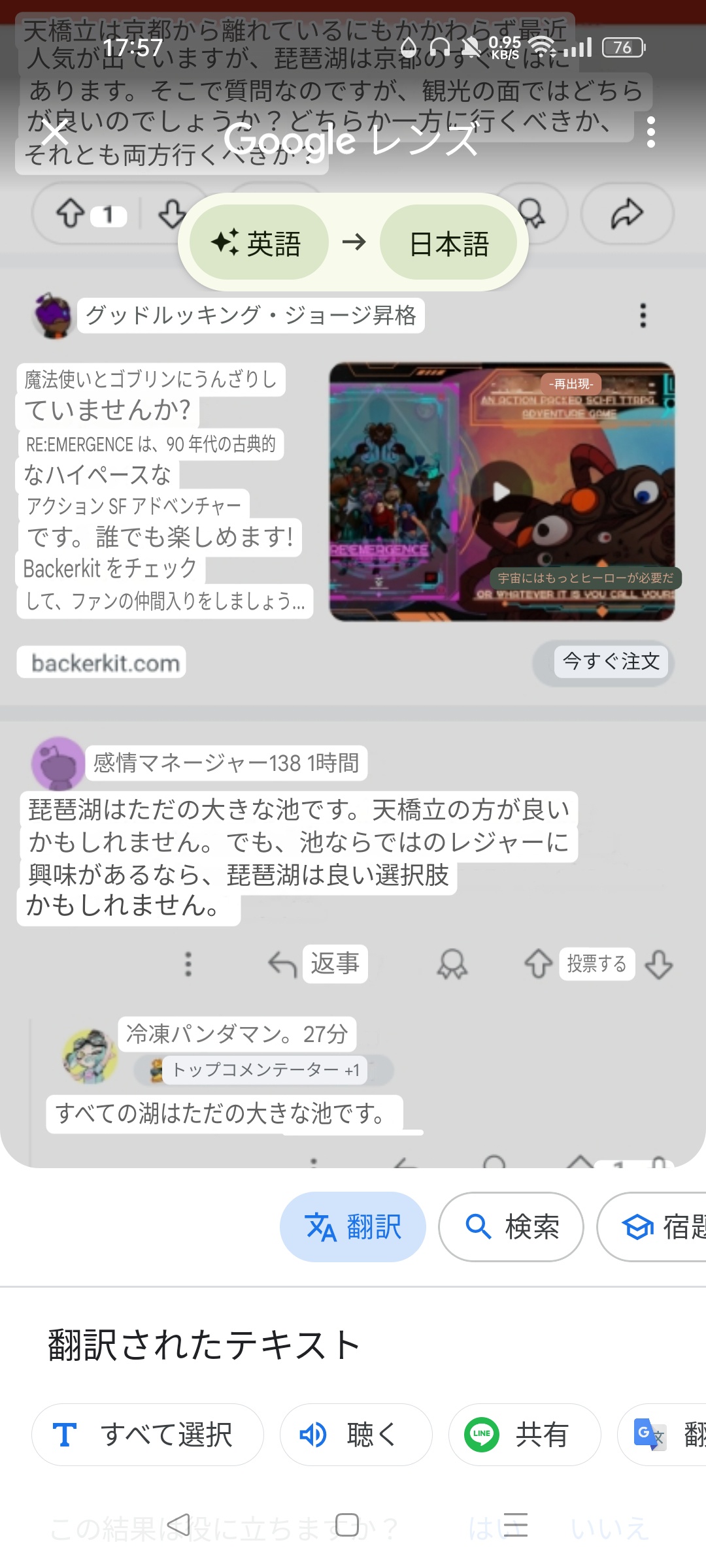 「琵琶湖行く価値ある?」「お前の近所にある池に行くのと同じぐらいの価値がある」