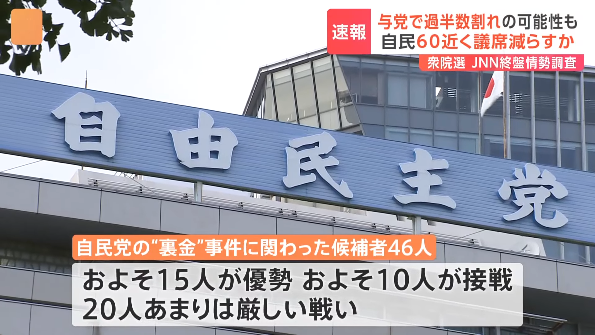 【速報】与党で過半数割れの可能性も 日本保守党は政党要件満たす見込み 衆院選JNN終盤情勢調査