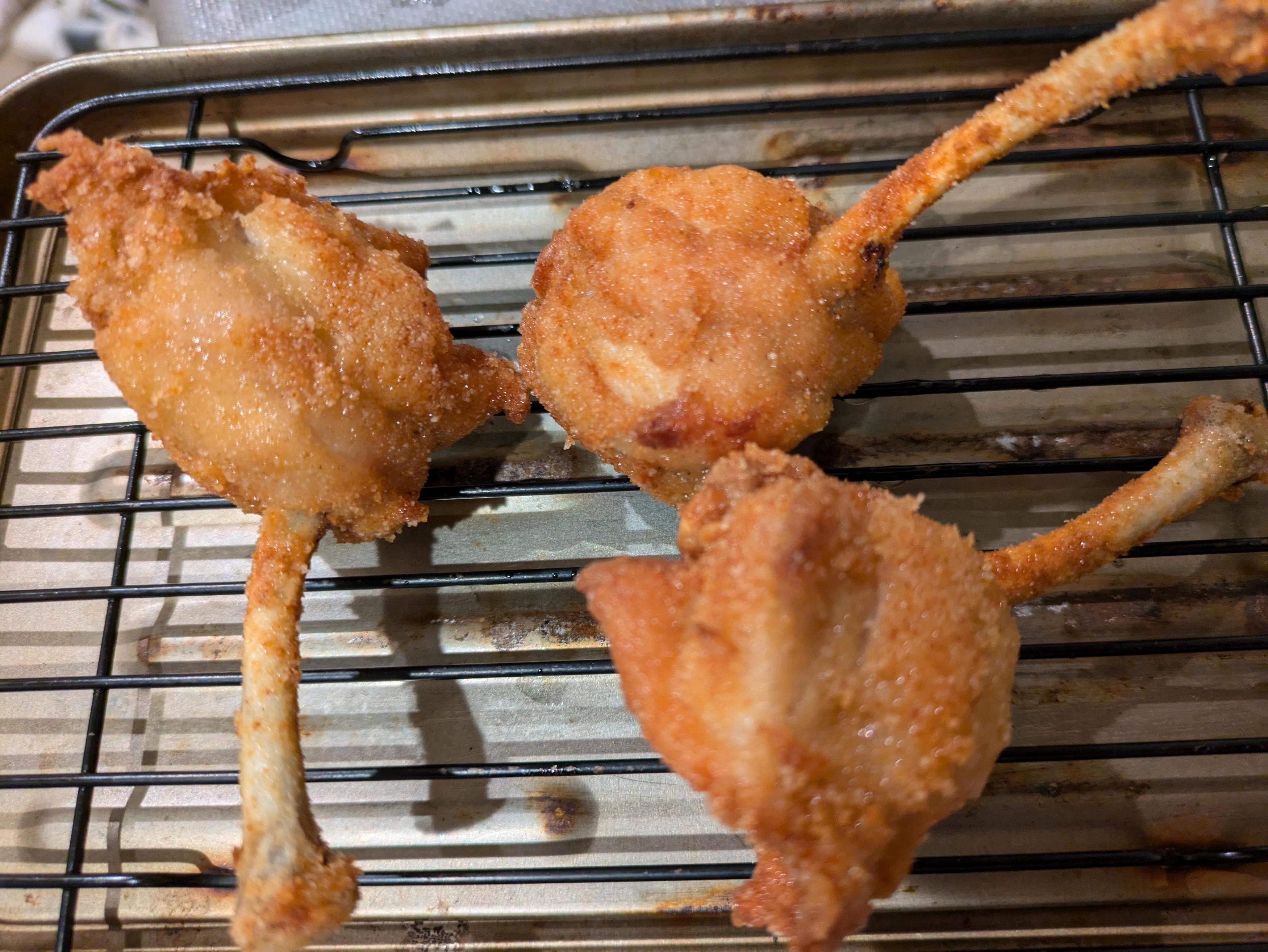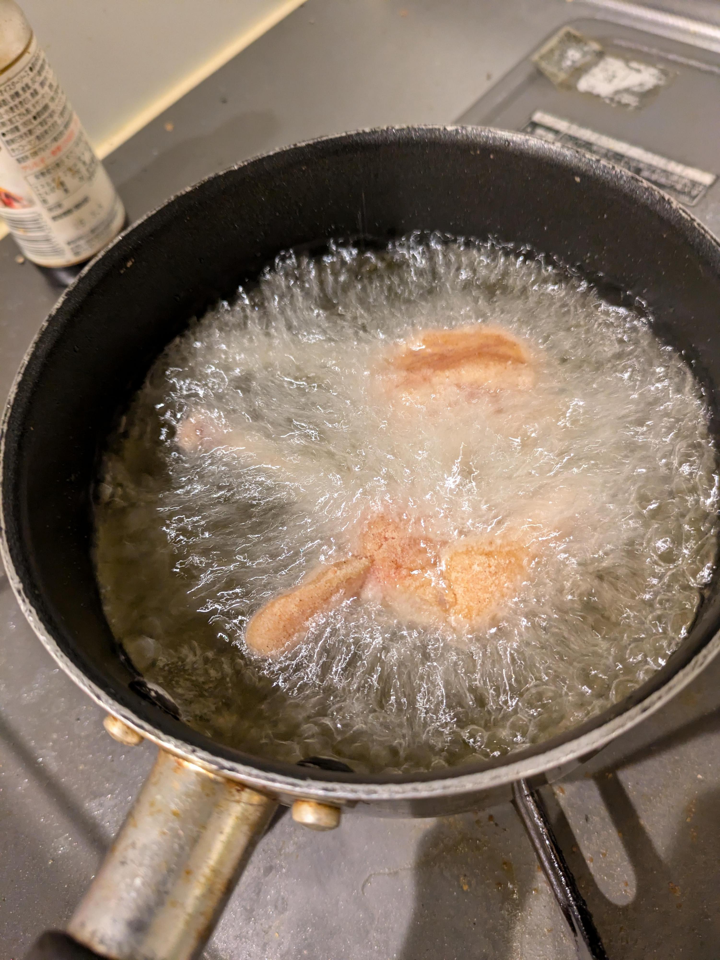 唐揚げ粉まぶしてサラダ油で揚げただけやで