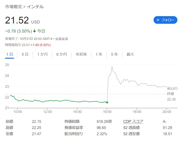 インテル株は20ドルの時に買い漁ったわ