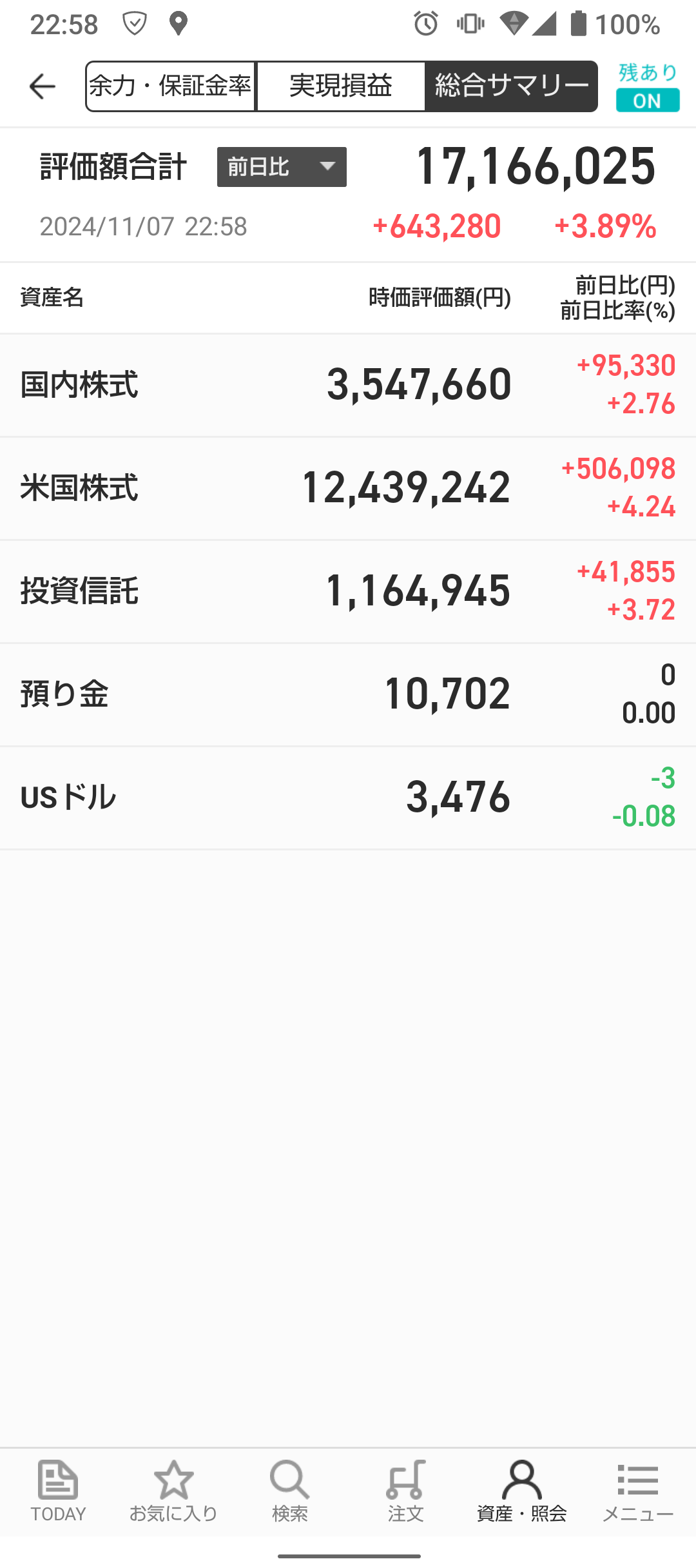 含み益100万越えたわ