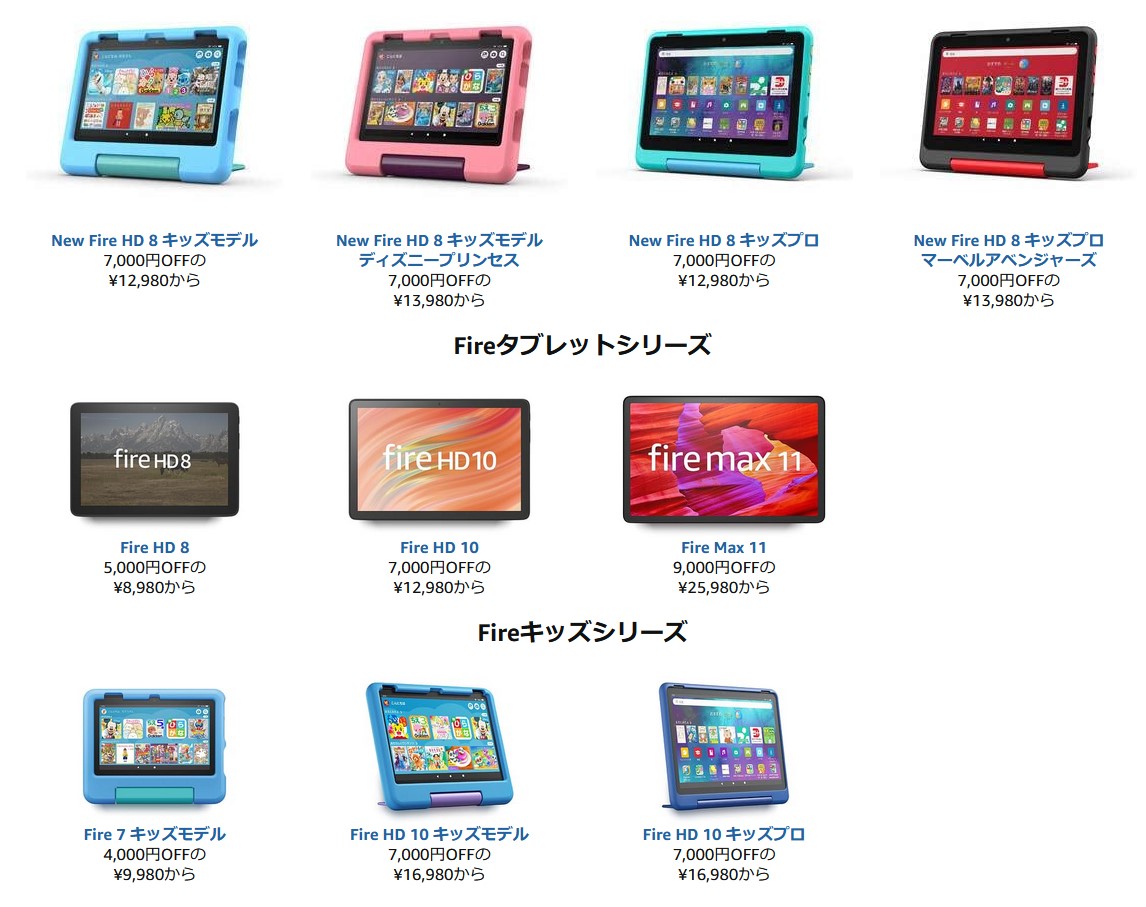 Fireタブレット最大9000円OFF(11/27~12/6)