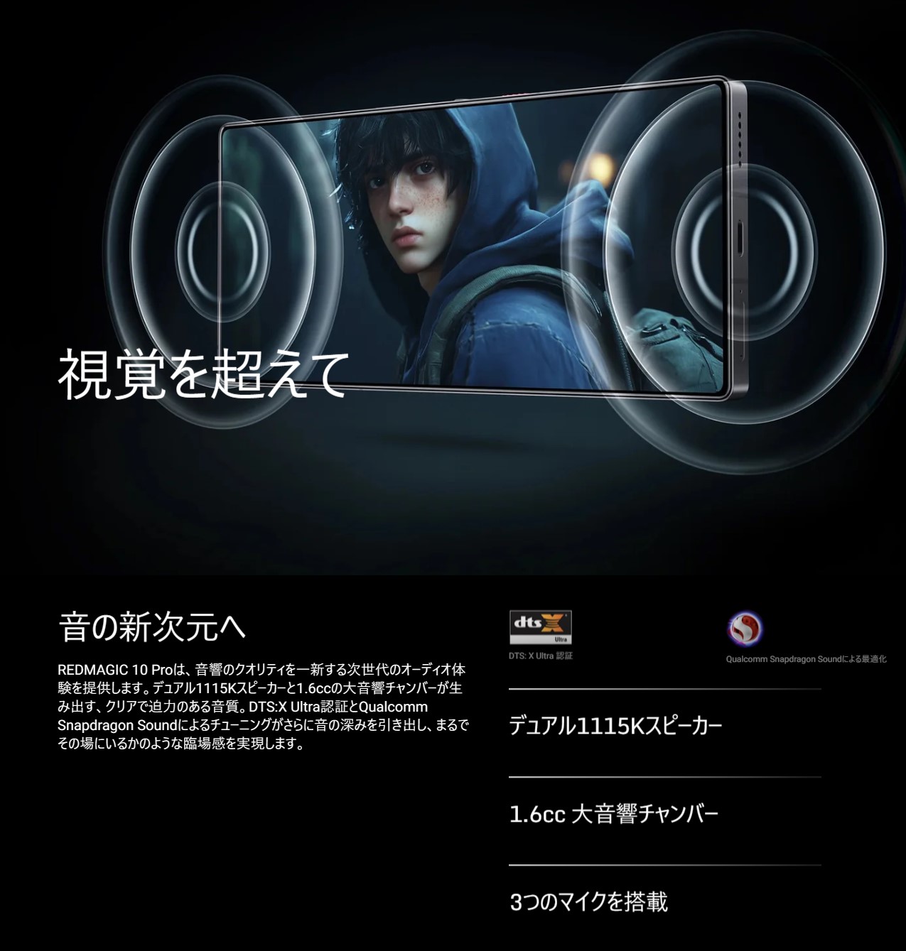- オーディオ:デュアルスピーカー、イヤホンジャック搭載