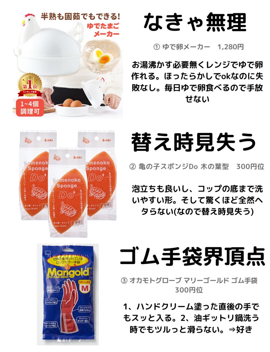 これあると楽だよーとかキッチン汚れなくて済む的なのないんか?