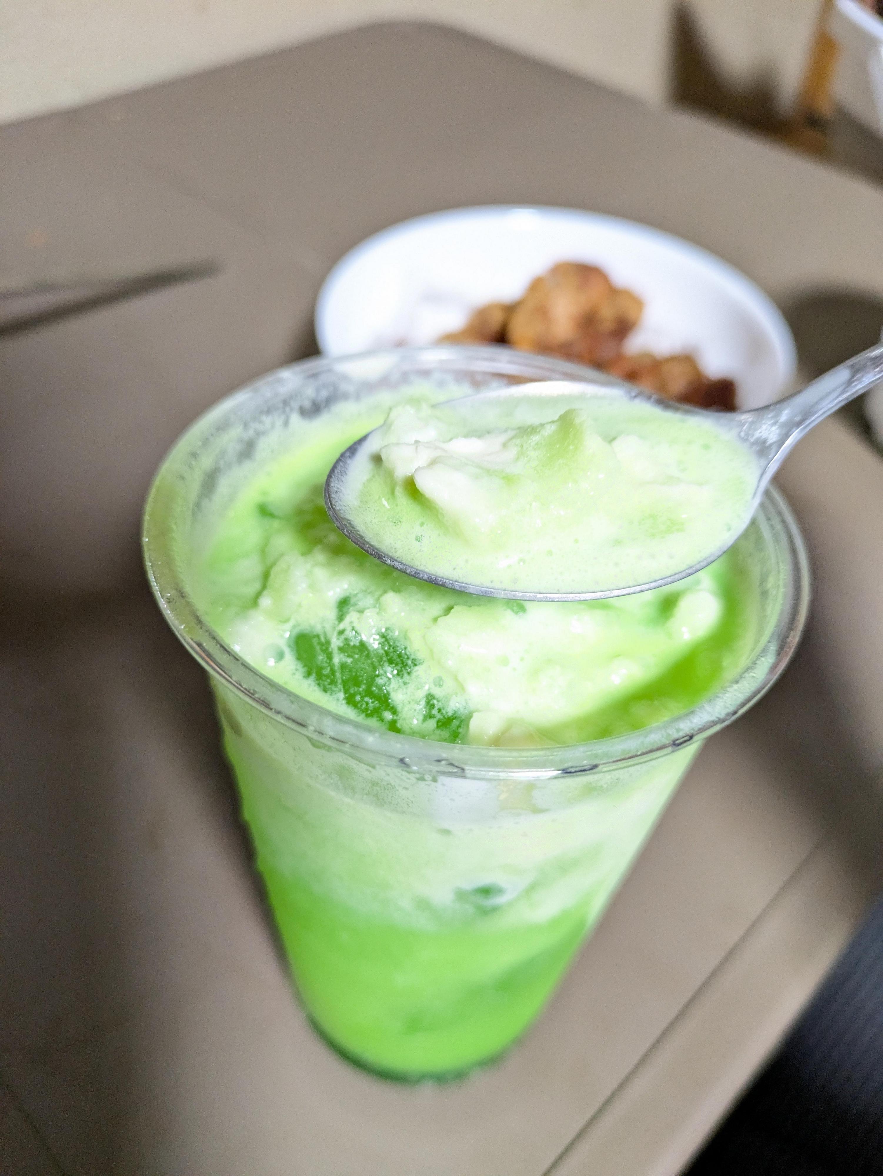 氷の上に乗せるからメロンソーダとの境目が作れてシャリシャリが美味い