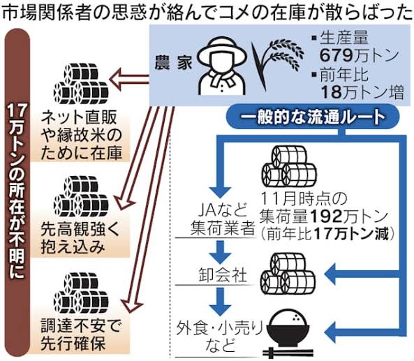 日本政府「お米17万トン(茶わん26億杯分)が行方不明なの」 新たな買い手の台頭と在庫の分散で把握できず
