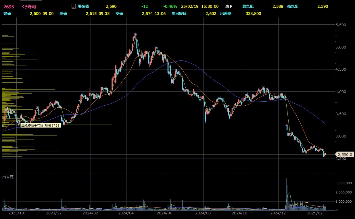 2695くら寿司、PTS↑ゴール。紙の優待に統一とか迷走してんな