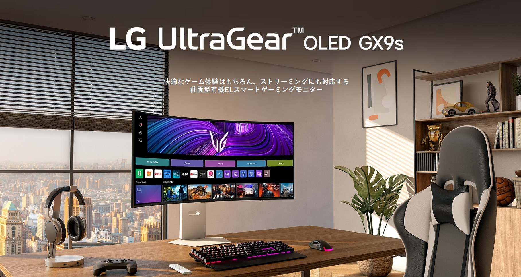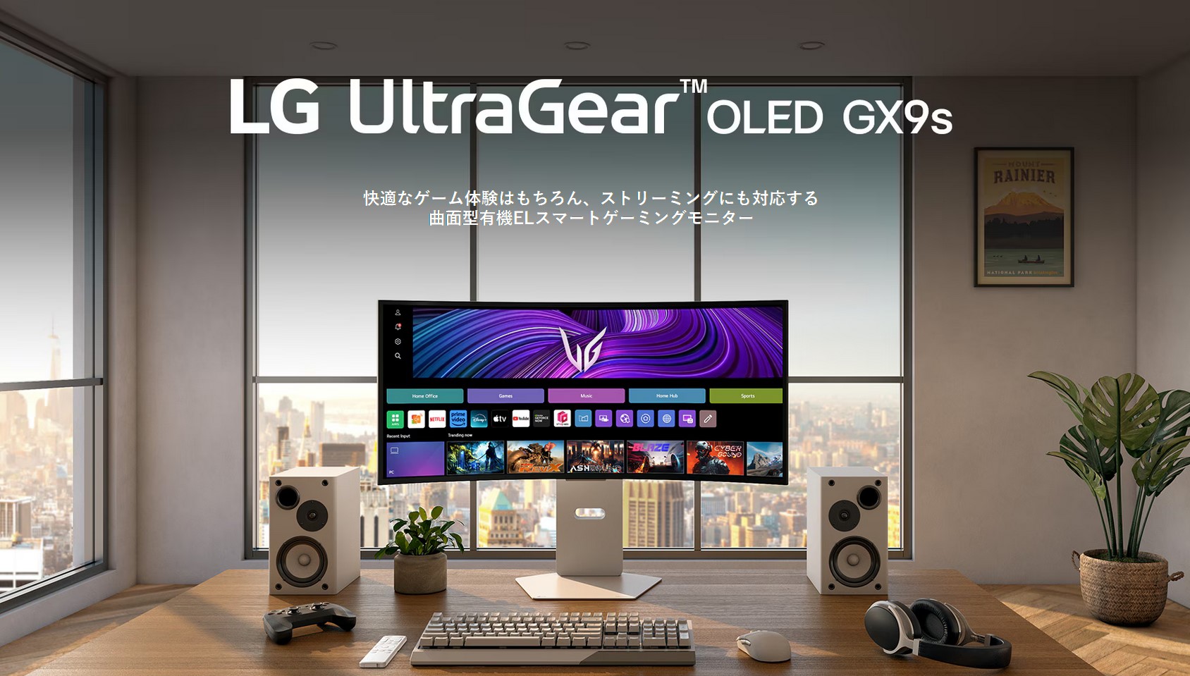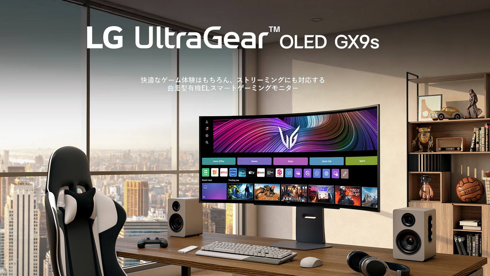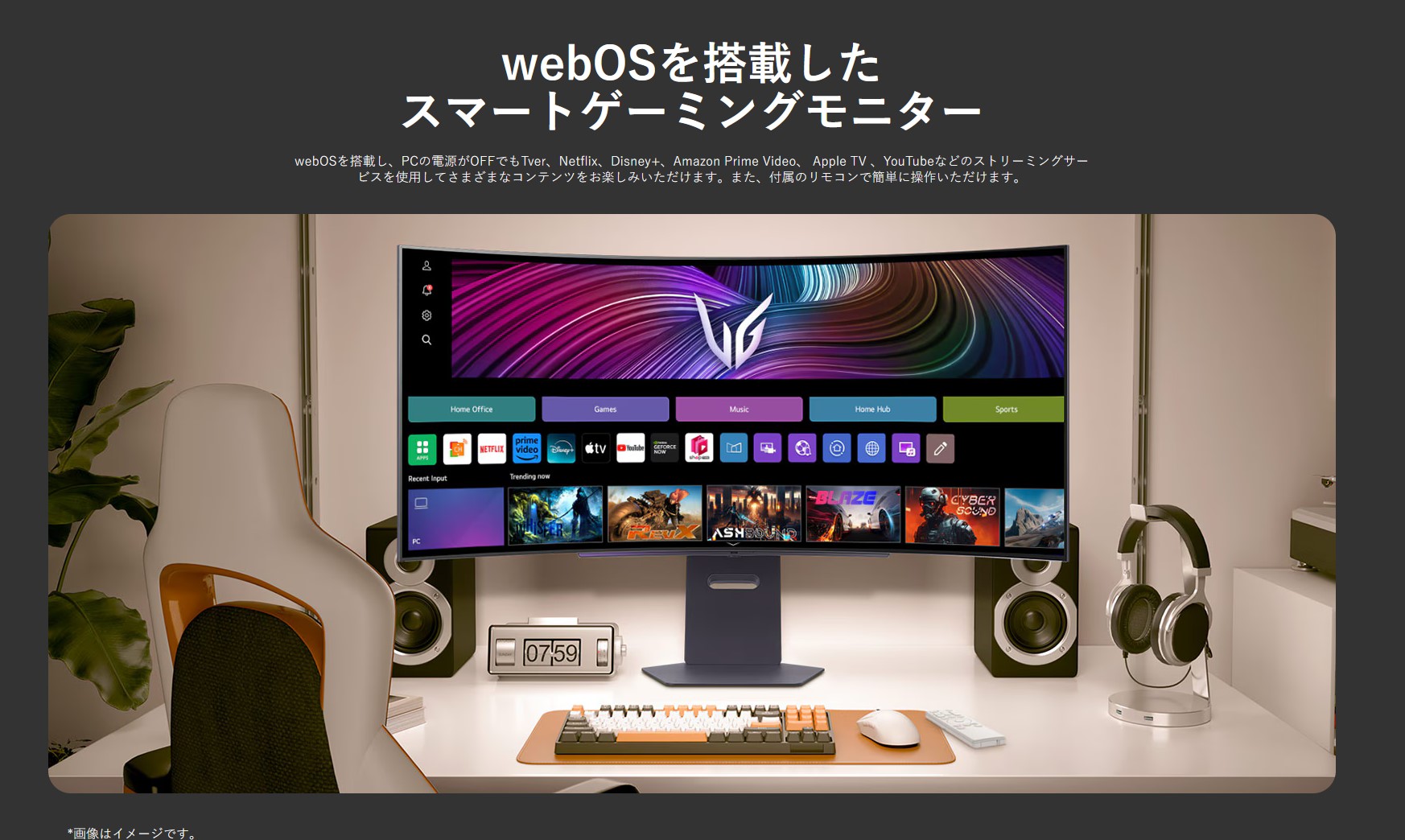 同時発表のUWQHD(3440x1440)モニタのサイズ違い3機種ははWebOS搭載でモニタ単体で動画視聴可能