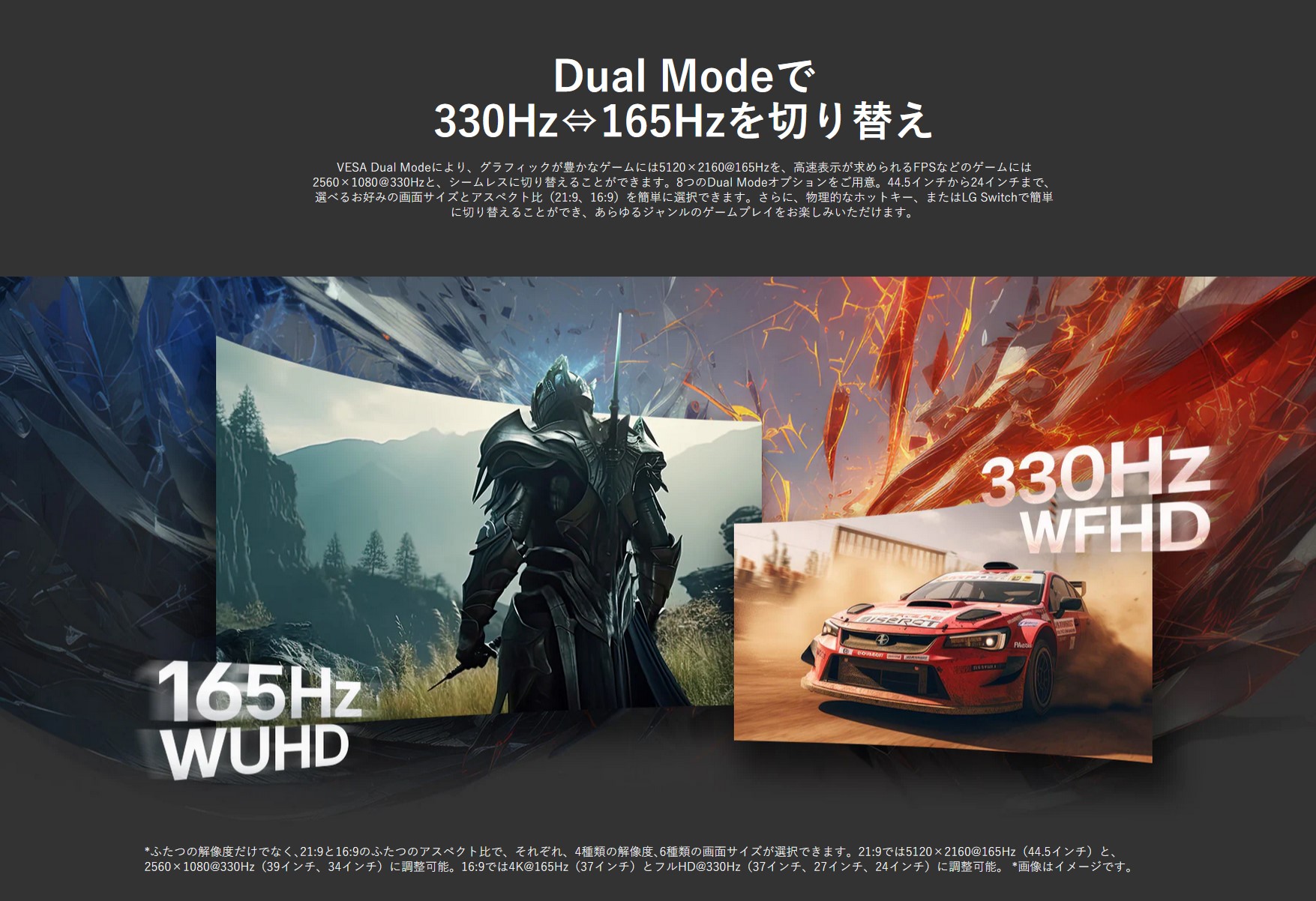 - リフレッシュレート:5K/165Hz、2560×1080/330Hz