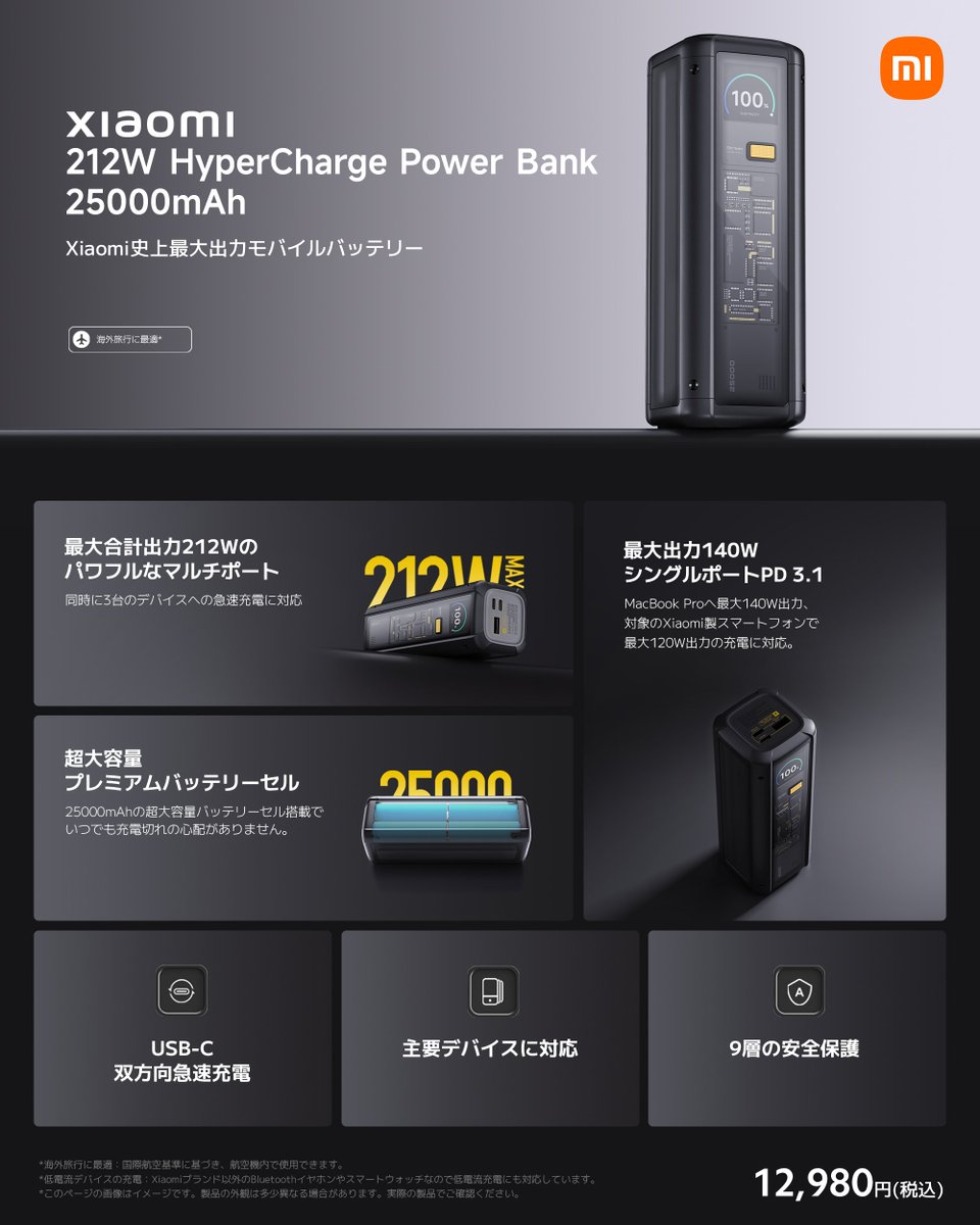 【本日発売!Xiaomi 212W HyperCharge Power Bank 25000mAh】