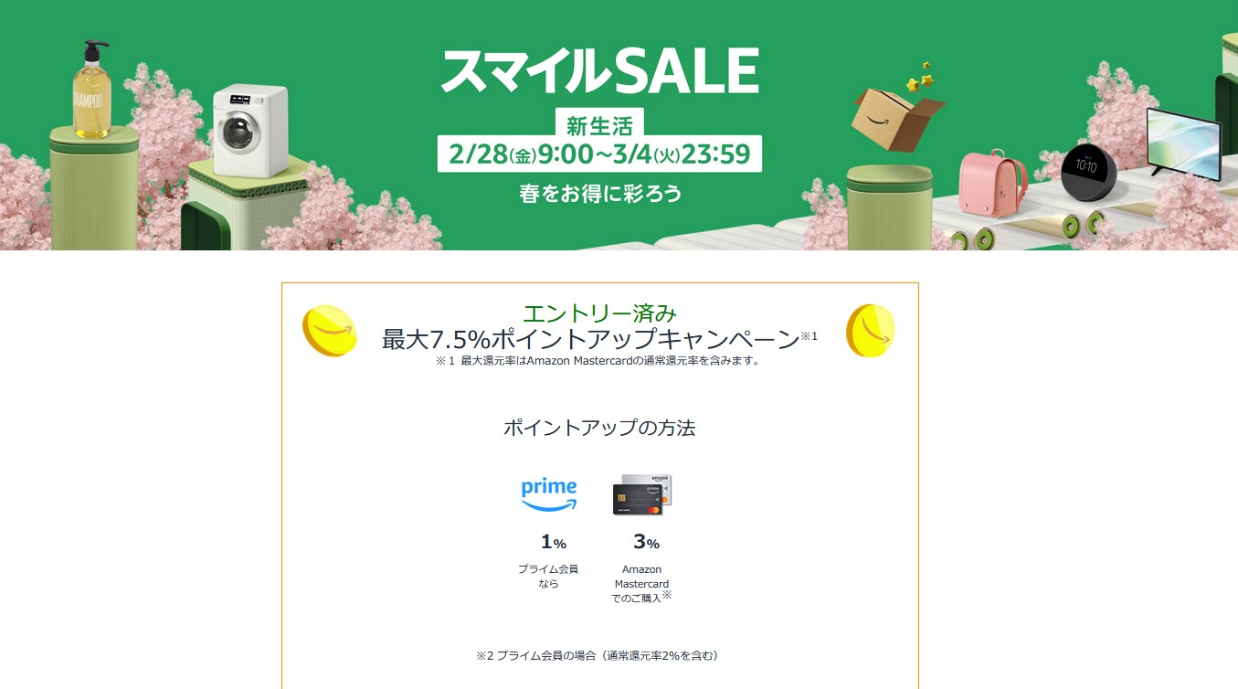 スマイルSALE & ポイントアップキャンペーン(2/28 9:00~3/4 23:59)