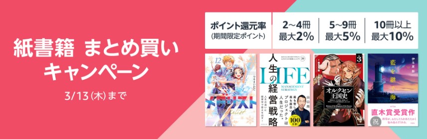 紙書籍まとめ買いキャンペーン(3/13まで)