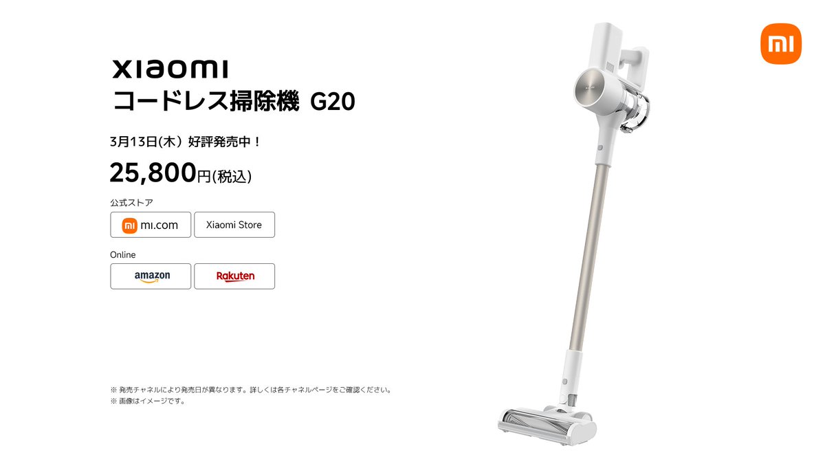 【3月13日発売!Xiaomi コードレス掃除機 G20シリーズ】