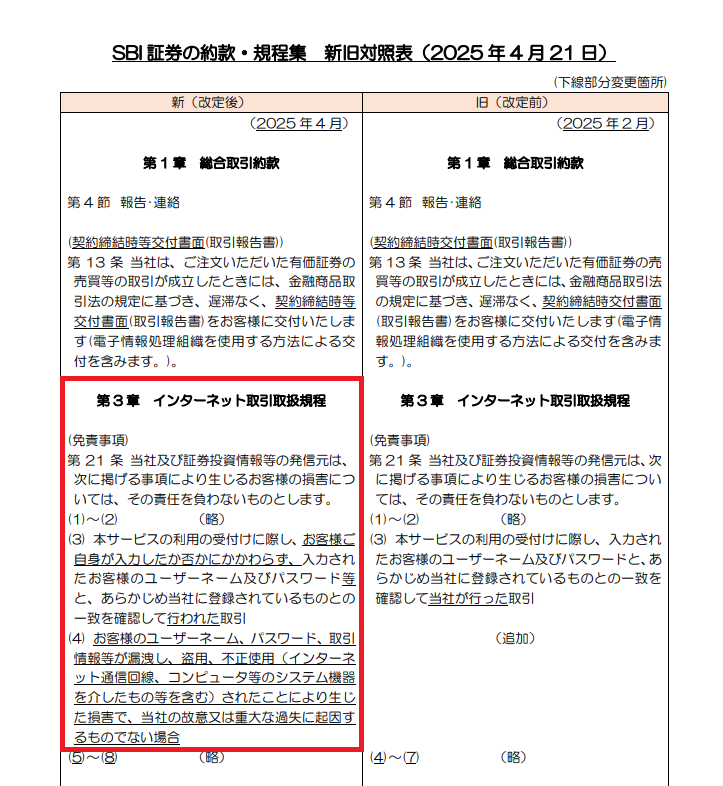 SBI4月から約款変わるやん