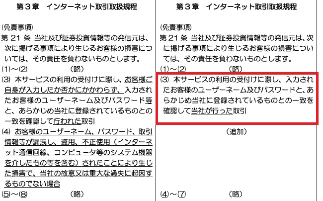 さらに書くと、本当に不正アクセスと証明出来たなら(警察が調べて認めたなら)どんな約款作ろうが保証せにゃならんくなる。裁判になったら100%負ける。
