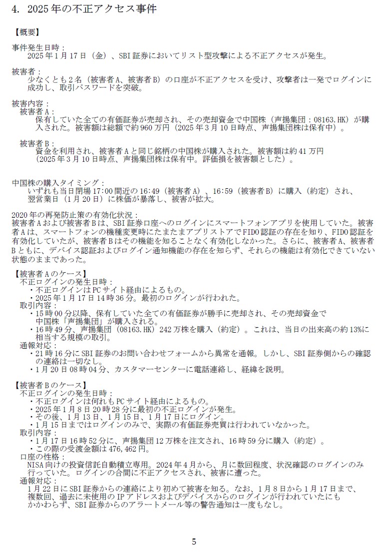 SBI証券では不正アクセスがあっても公表しないからでしょうか。