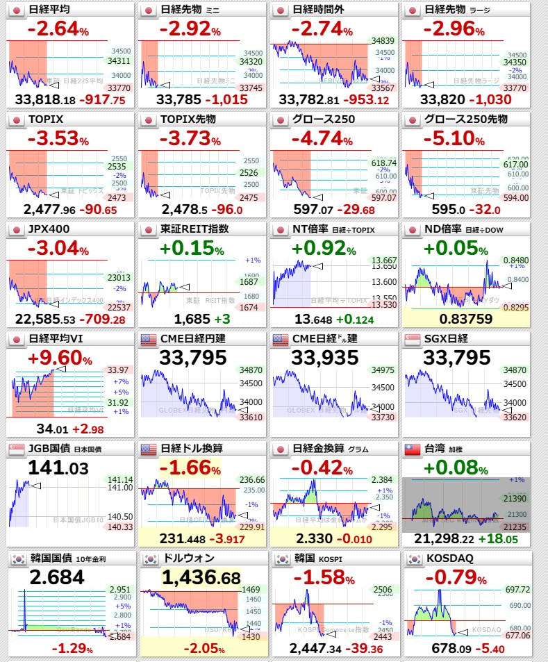 なお、本日もアジア主要市場では日本がダントツの下げ率