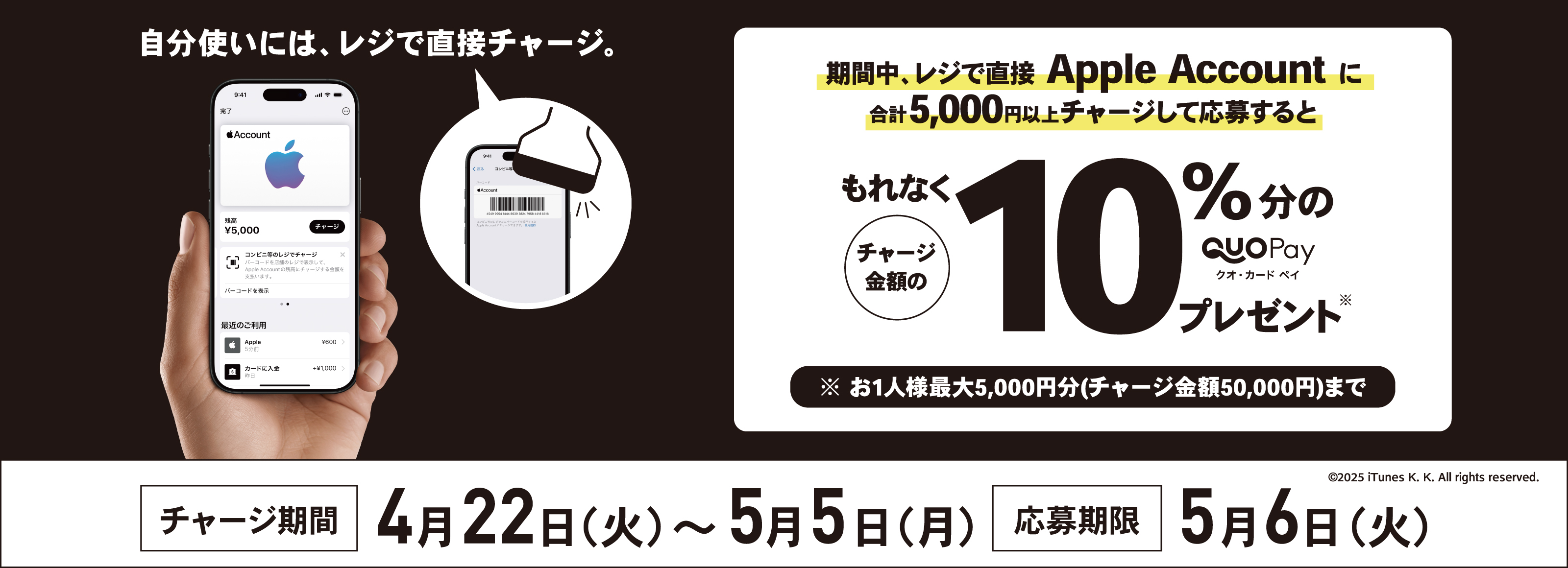 ローソン|Apple Account チャージ 10%分の QUOカードPay プレゼントキャンペーン