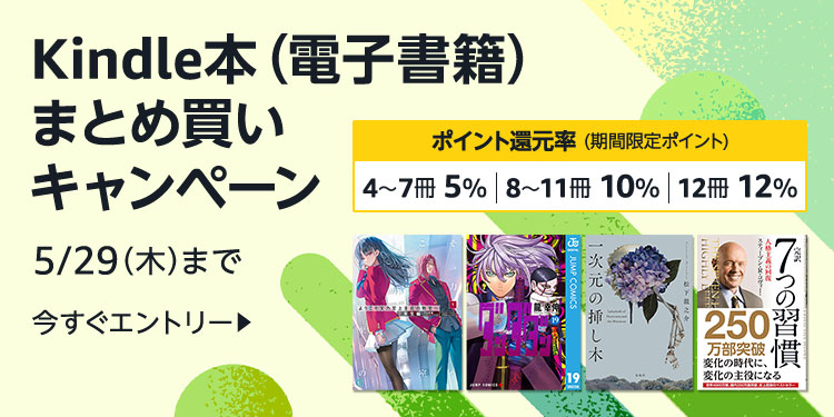 【最大50%還元】Kindle本(電子書籍) ポイントキャンペ-ン(6/5まで)
