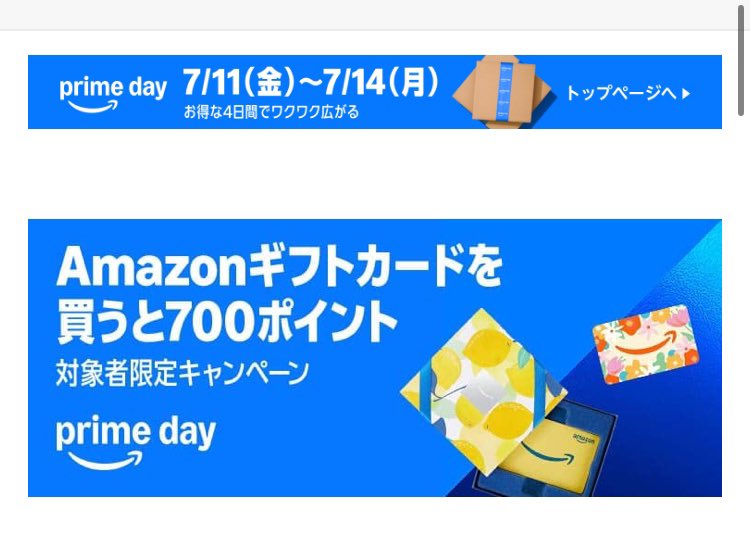 Amazonギフトカードを?円以上買うと?ポイント(7/14まで)
