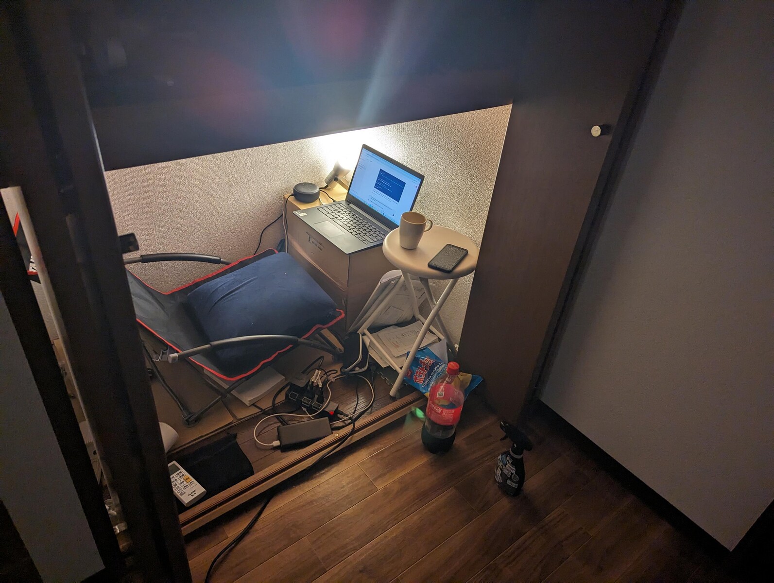 部屋汚えな、それ片付けたら場所出来てわざわざクローゼットで作業する必要無くね?