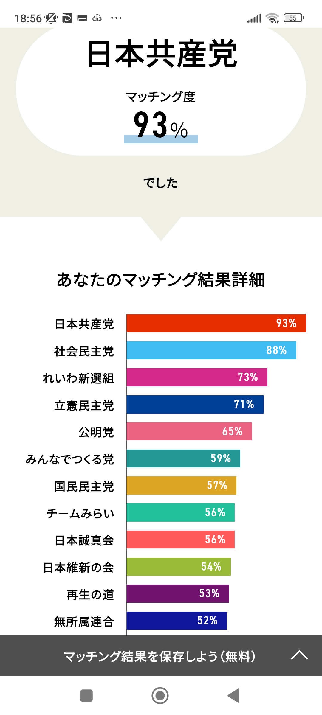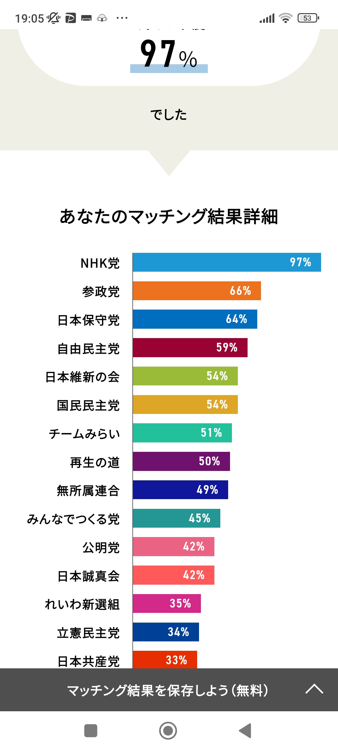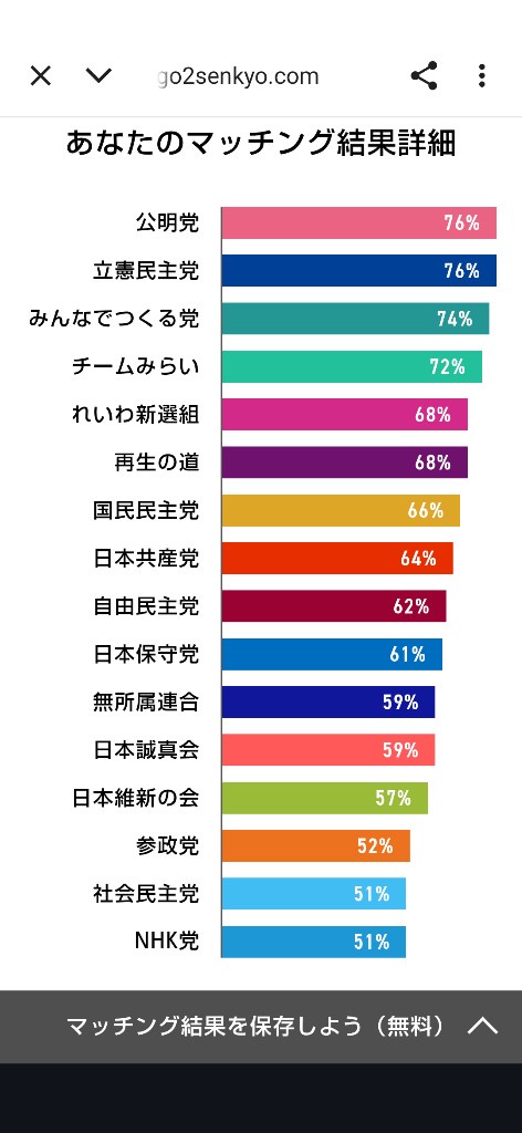 ワイはネトウヨやけどれいわが1位やったわ