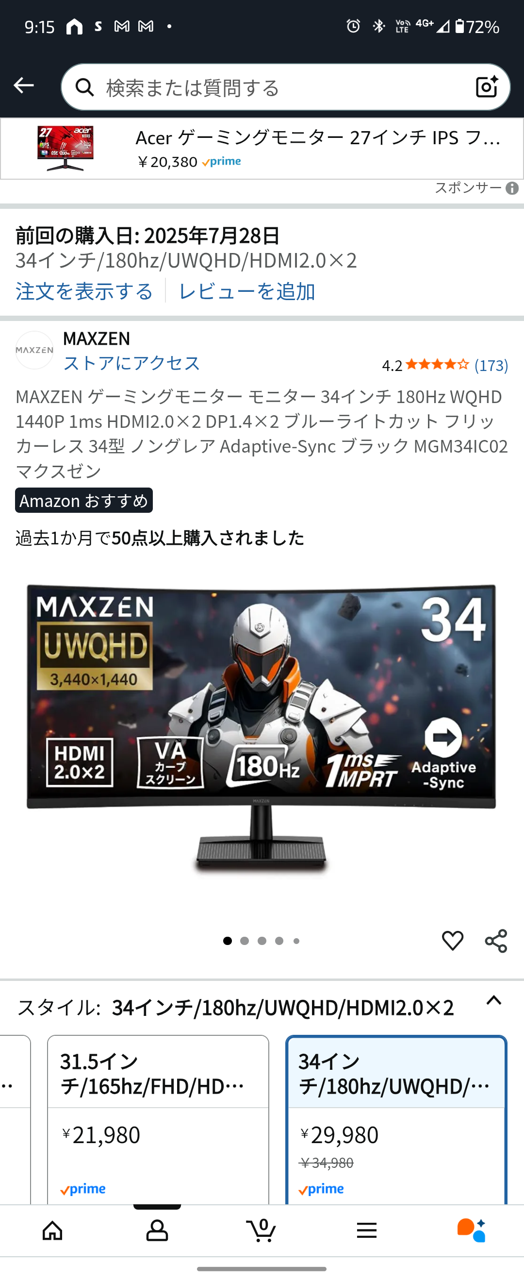 以前買った34が65000円くらいだったんだが昨日みたのは3万2000円くらいだったかな
