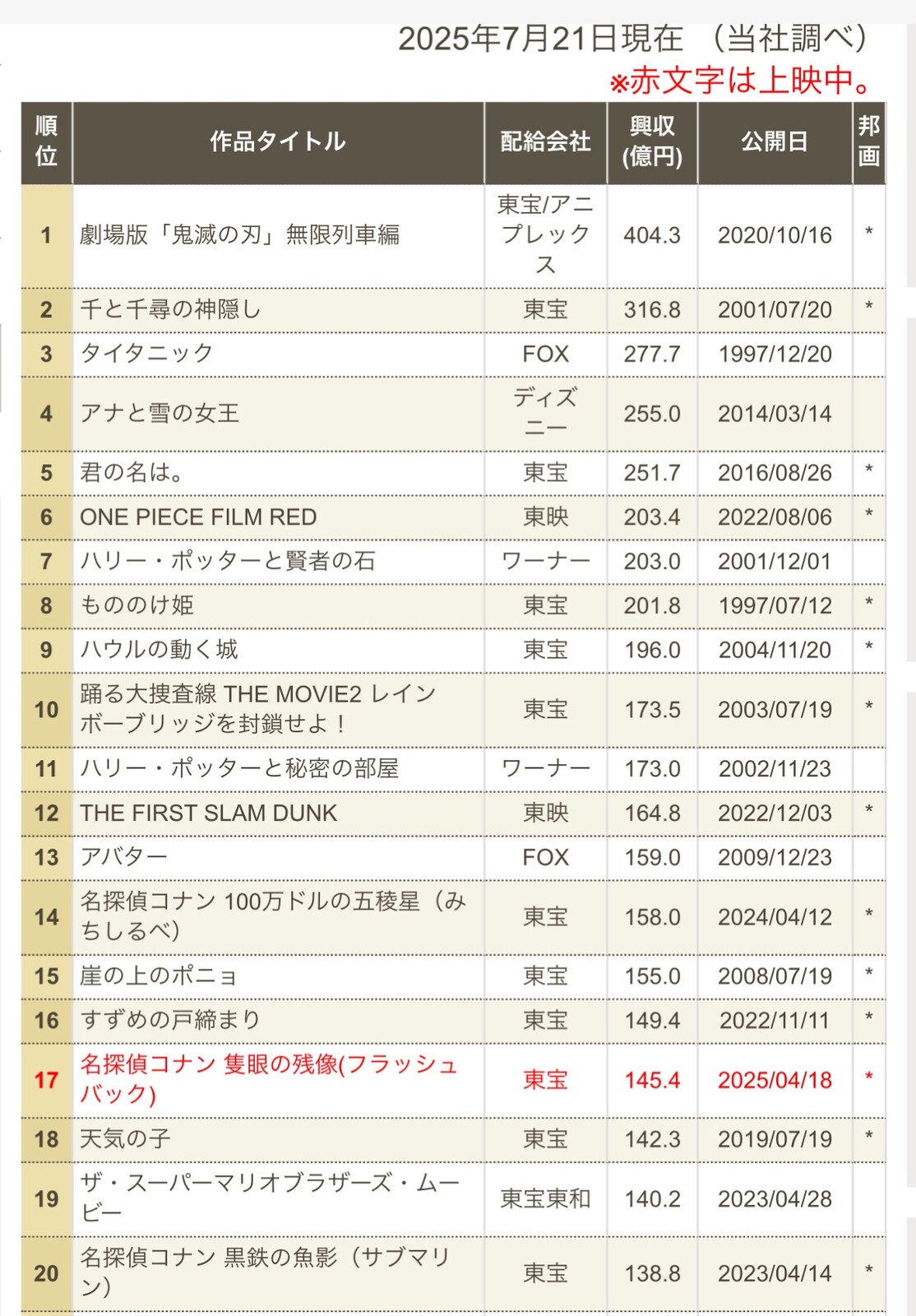 なお、最低でもあと2作あるのでTOP10のうち4作品が鬼滅になる模様…