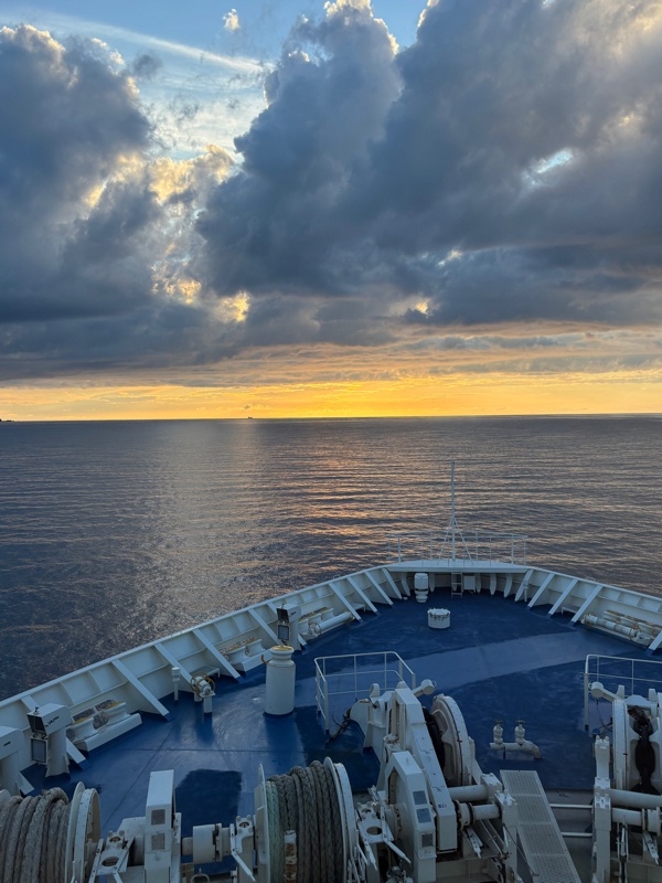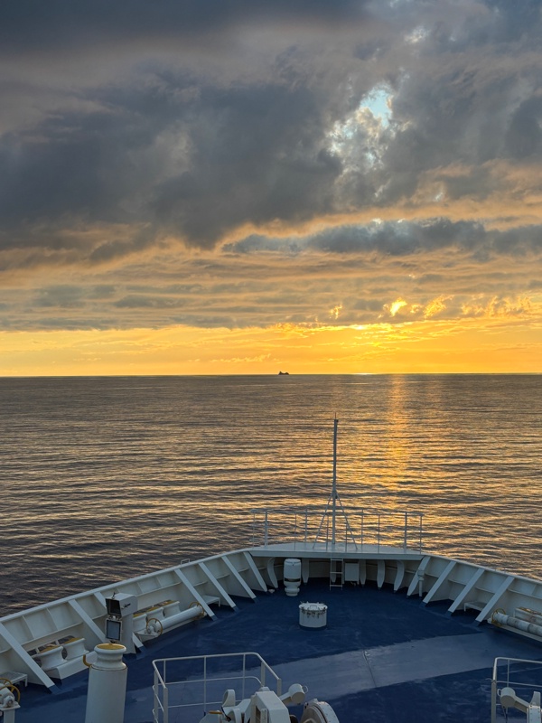 夜のフェリーのデッキに出て海面を眺めてるとこわい
