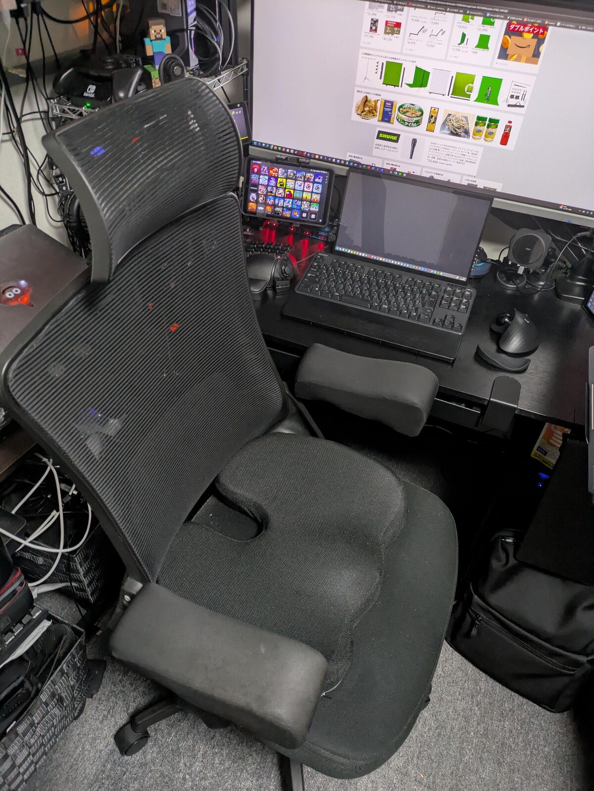 一応持ち出しのノートPCでリモートワークするときは正面のワイドモニターだけ繋いでるよ